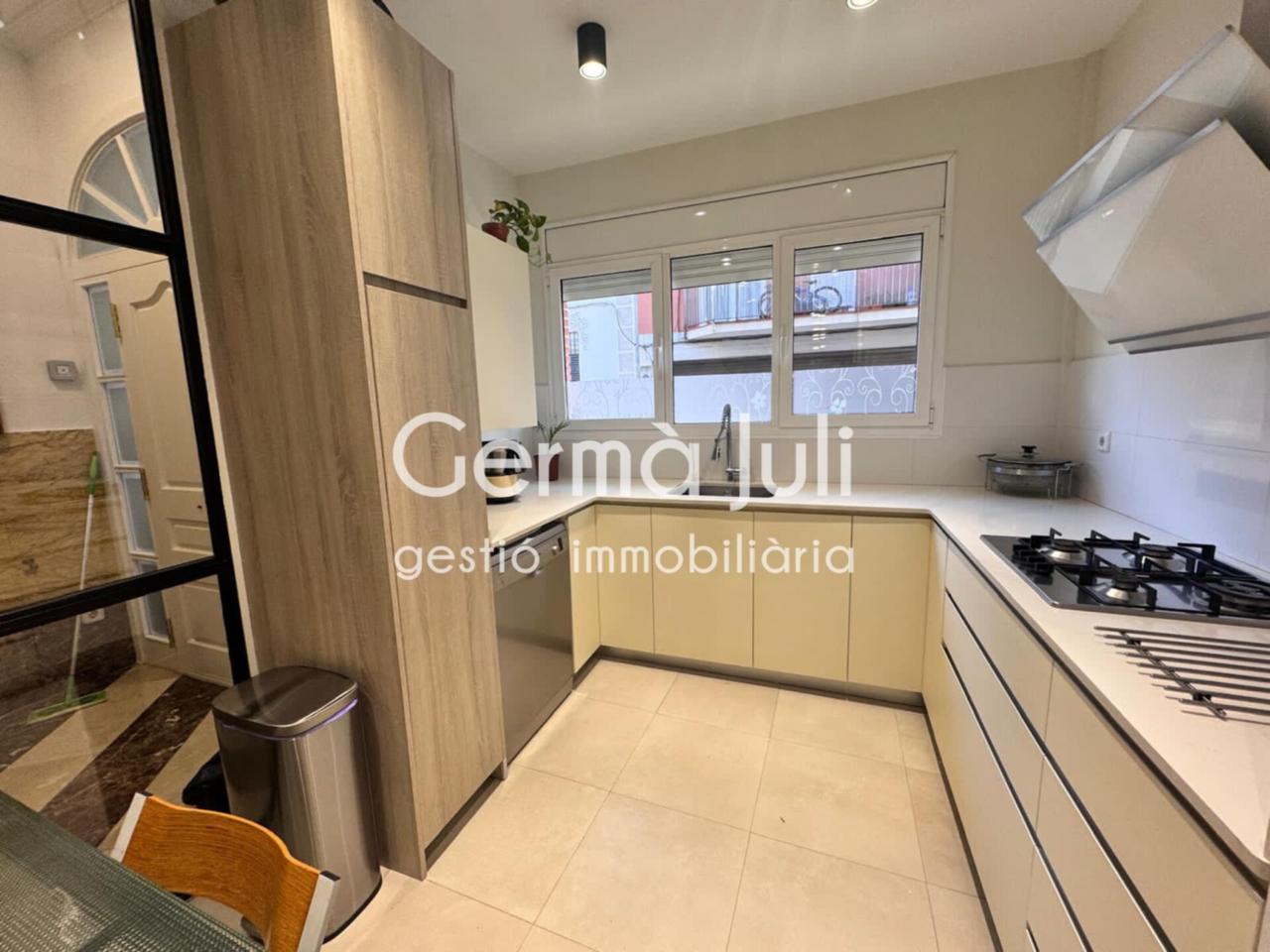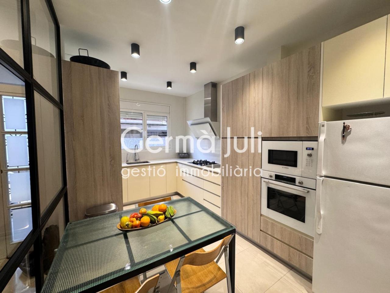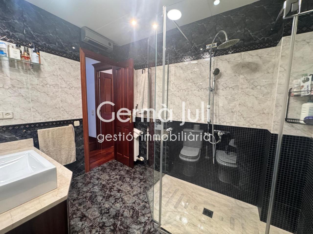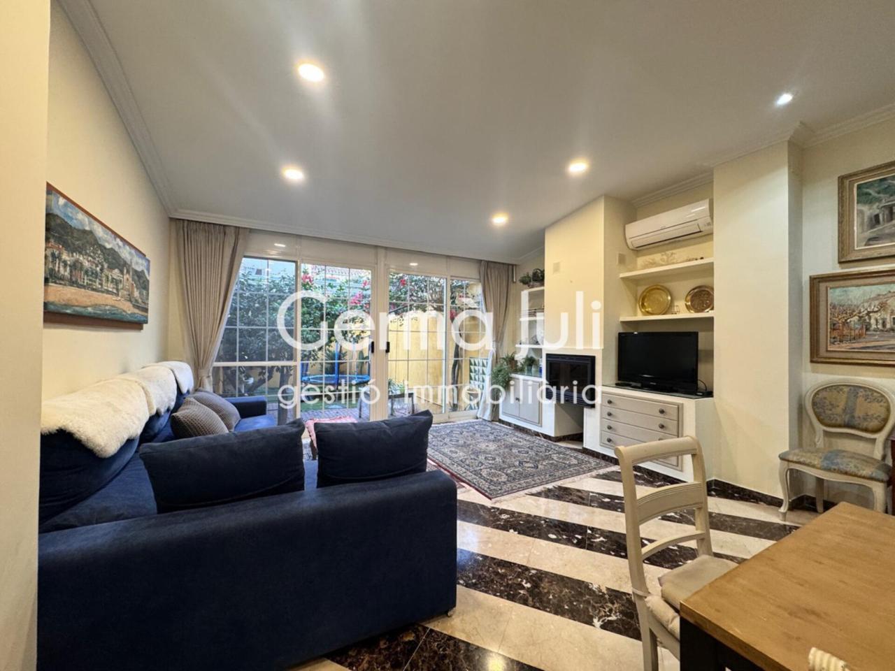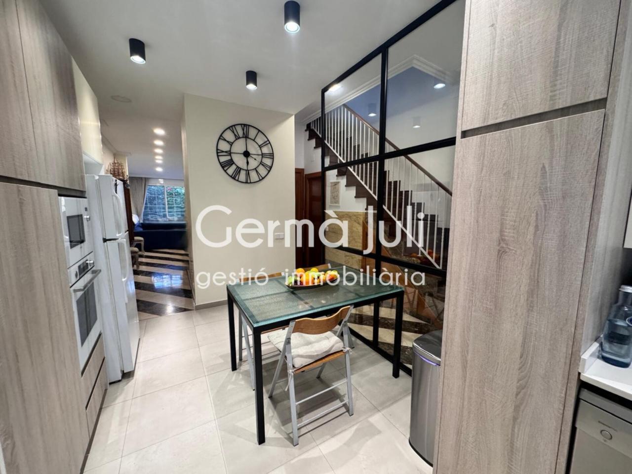 Planta baja: amplia cocina exterior tipo office, moderna y minimalista equipada con muebles de diseño. Impresionante salón-comedor de 37m2 con chimenea (llar de foc) y acceso directo al jardín privado, un espacio ideal para barbacoas, reuniones familiares o encuentros con amigos. Aseo de cortesía.
