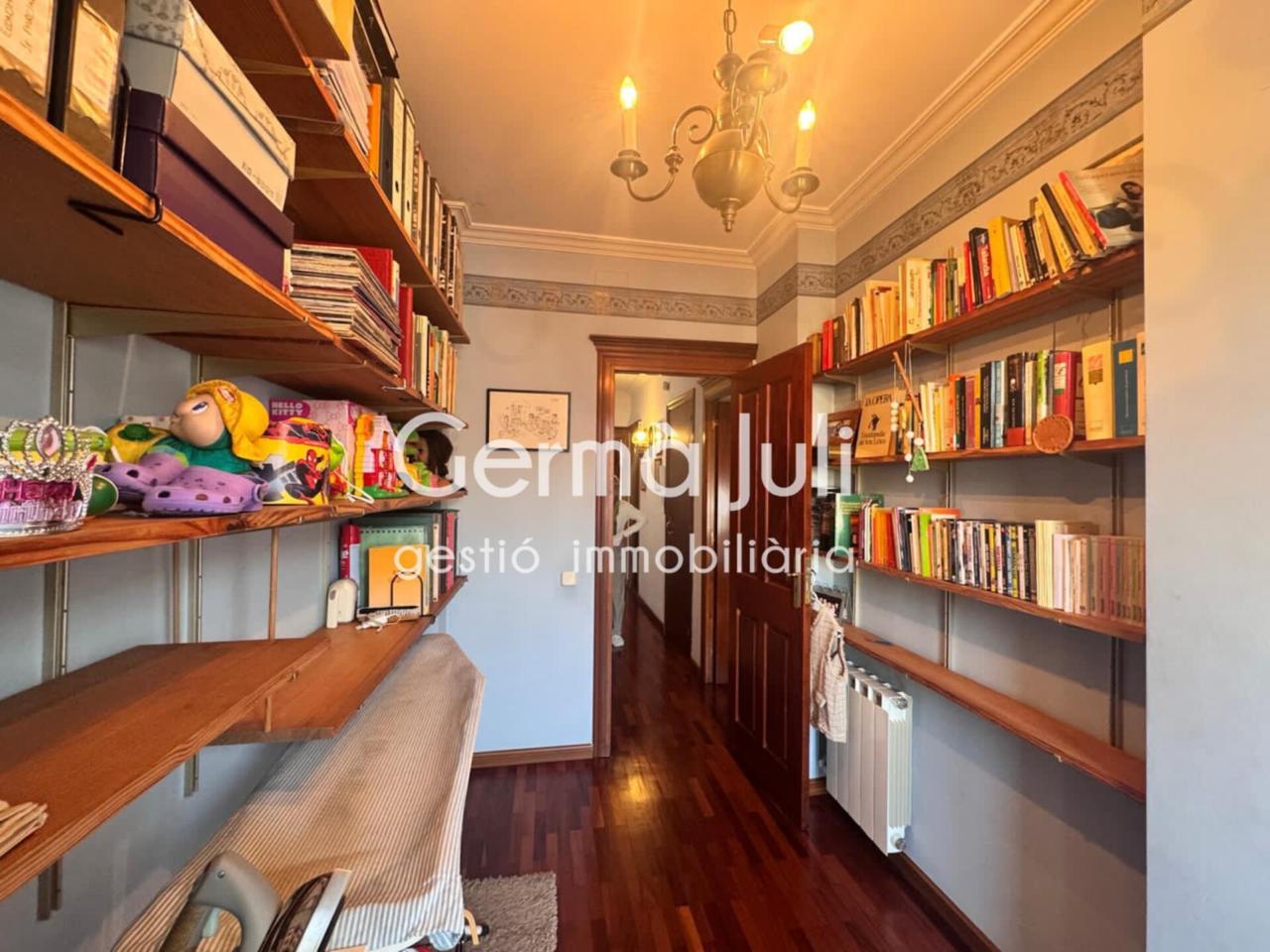 Acabados de alta calidad: parquet industrial tono caoba, puertas caoba, molduras en pladur, carpintería exterior de aluminio anodizado con cámara climalit.